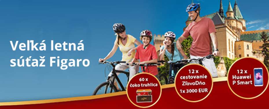 Veľká cestovateľská súťaž s Figarom a ZľavaDňa prebieha na stránke Figaro.sk, kde si môžete pozrieť výber zaujímavých cestovateľských tipov. Podmienkou zapojenia sa do súťaže je, odfotiť sa pri týchto vybraných miestach s čokoládou Figaro a fotku nahrať na tejto stránke. Odmenou za cestovanie a fotografovanie vám bude množstvo vecných cien, vrátane pobytov, telefónov Huawei, či hlavnej ceny 3 000 eur na rok cestovania so ZľavaDňa.