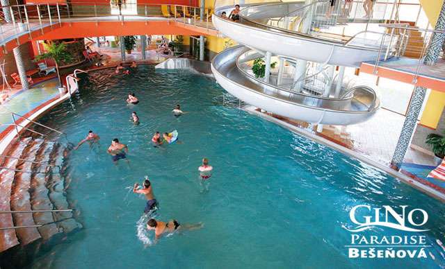 Vodný raj GINO PARADISE je vybudovaný na báze horúcich prameňov termálnych vôd, ktoré vyvierajú z hĺbky 1987 metrov s teplotou 60,5 °C. Blahodarne pôsobia na pohybové a dýchacie ústrojenstvo, majú priaznivé kozmetické účinky a vďaka prvku lítium pozitívne vplývajú aj na psychiku človeka.